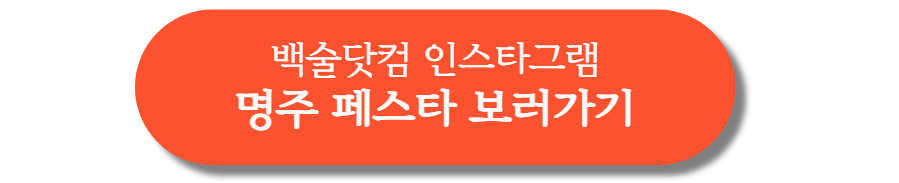 명주 페스타 정보는 백술닷컴 인스타그램에서 가장 먼저 업데이트되고 있습니다. 발빠르게 소식을 접하고 싶다면 아래의 백술닷컴 인스타그램 링크로 들어가시면 됩니다.