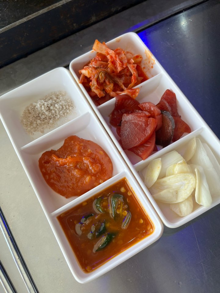 반면에 춘향골은 같이 온 일행끼리만 먹을 수 있게 따로 따로 구워주는 시스템이 위생적이라고 느껴졌어요. 그래서 이곳을 선택했고 잘 한 선택인 것 같습니다. 옆에 앉으신 분들과 전혀 음식을 공유하지 않으니 편하게 먹을 수 있었어요. 기본 찬도 깔끔했고 부족해 보이면 알아서 리필해 주시더라고요.