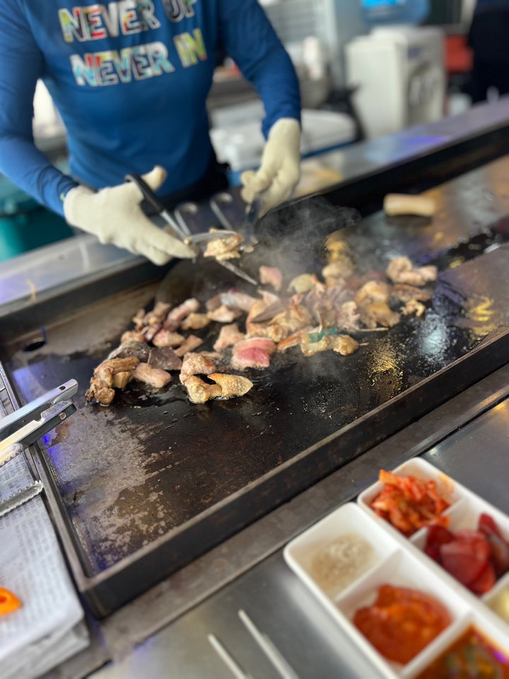 이렇게 이모님께서 개별적으로 구워주십니다. 사실 돼지부속이 은근히 하드코어인 음식이기 때문에 냄새가 전혀 안난다고 할 수는 없을 것 같아요. 그럼에도 여기는 꽤 냄새를 잘 잡은 느낌이어서 저 같은 초심자들도 방문하기 괜찮을 것 같습니다. (콩팥이었나요? 그 부위는 정말 하드코어입니다. 주의하세요.)