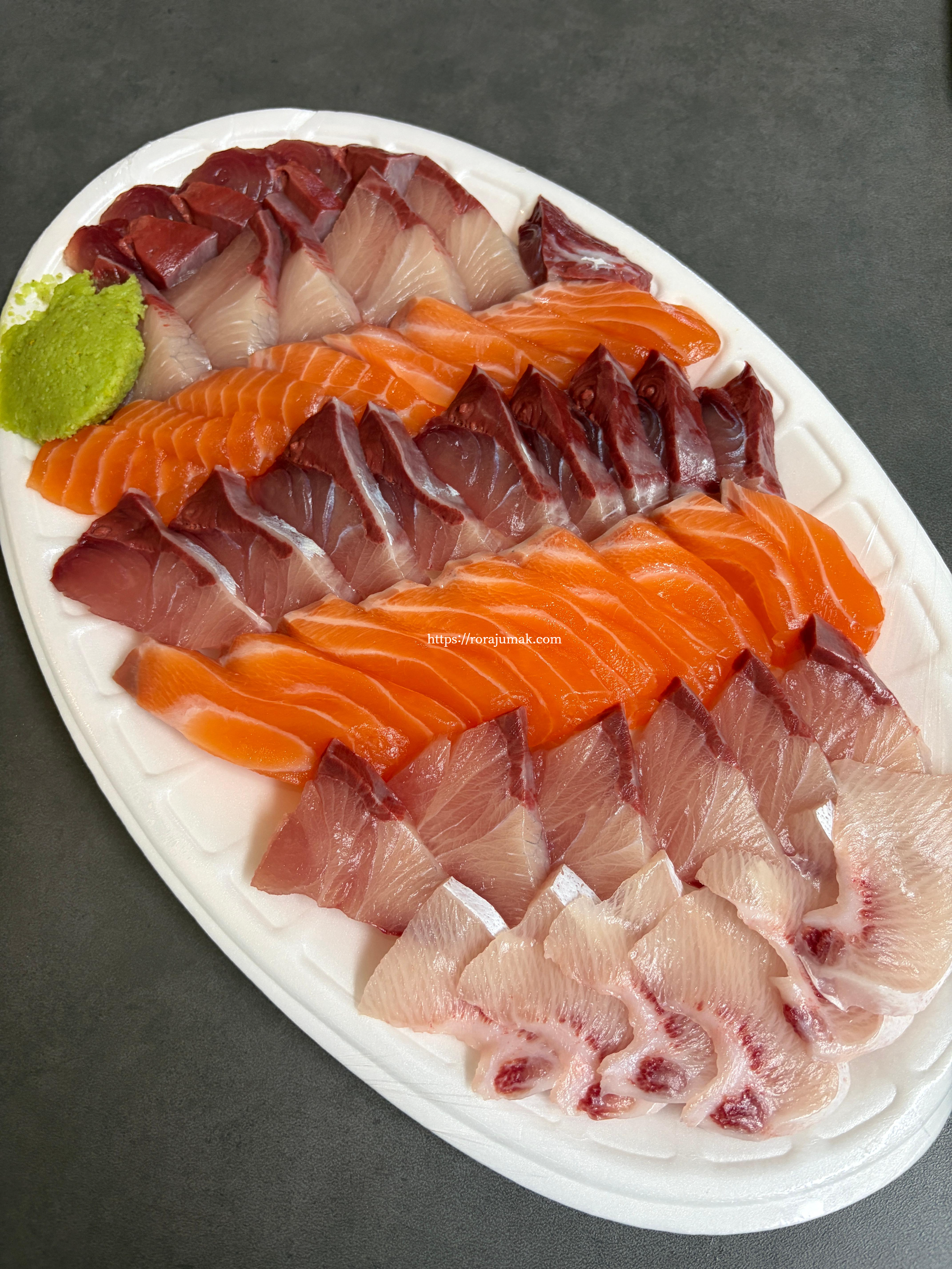 연어 반, 방어 반으로 주문한 회입니다. 무크리 한잔 톡 털어넣고 김에 방어, 묵은지, 마늘, 고추 올려서 한 입에 먹어주면 행복 수치가 쫙 올라가요! 무크리에 방어회, 꼭 한 번 드셔보시길!