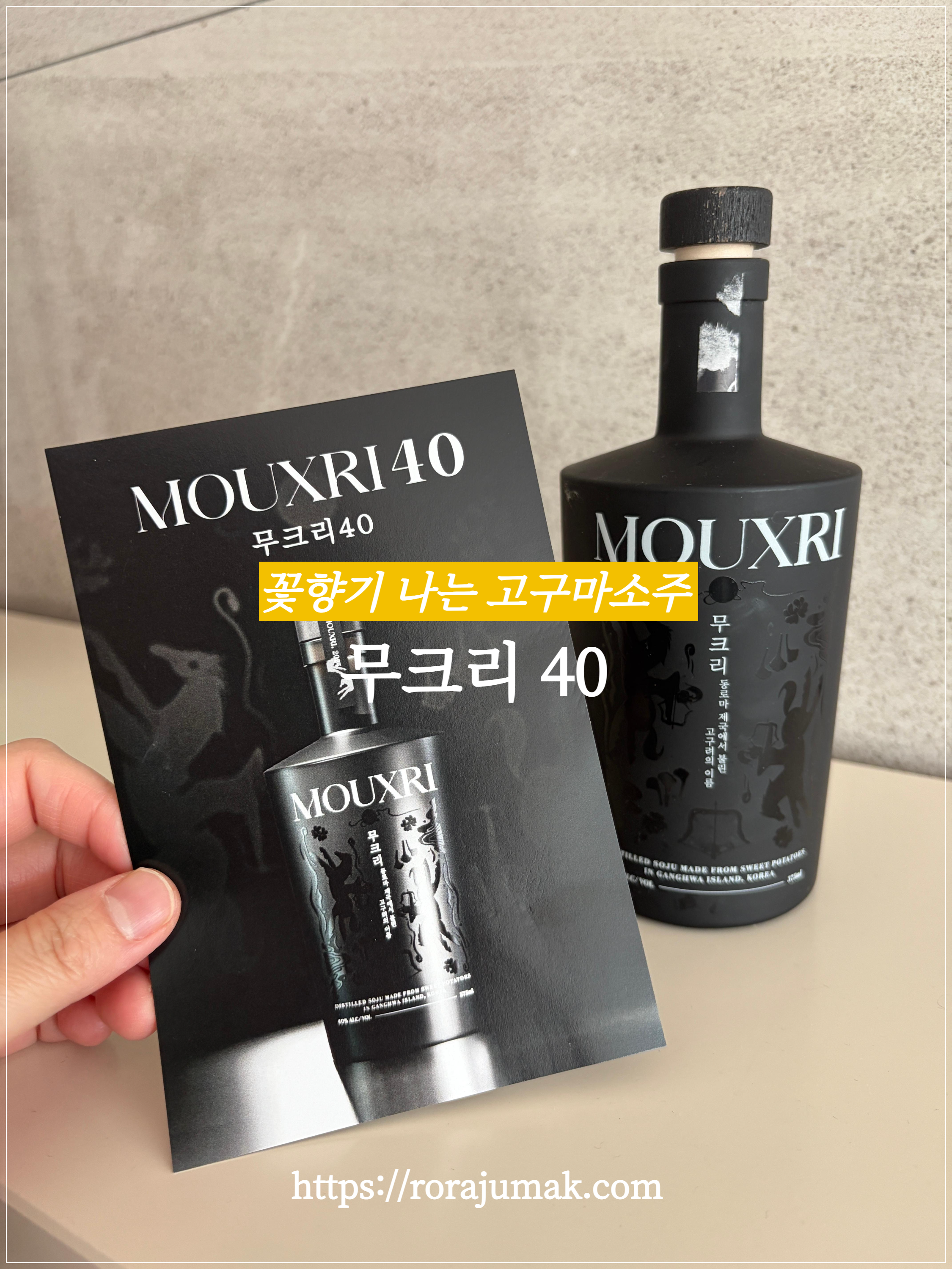 무크리 40은 삼양춘 막걸리로 유명한 송도향에서 새롭게 출시된 증류식 소주입니다. 2025 대한민국 우리술대축제에서 시음해보고 구매하게 된 술입니다.
