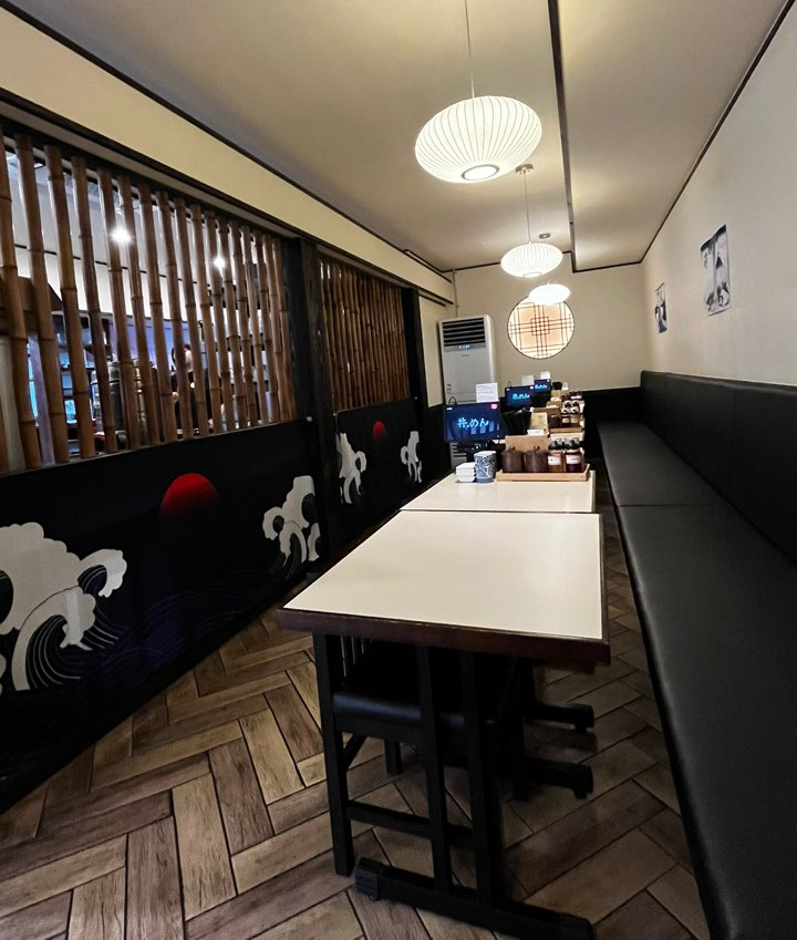 외부부터 일식당 분위기가 물씬 나는 문래동, 멘. 마치 일본에 여행온 듯한 느낌이 납니다. 내부는 꽤 넓은데요. 오픈키친 형태의 주방 앞에 바 자리가 있고 안쪽에는 4인 이상 앉을 수 있는 테이블이 준비되어 있어요. 입구 쪽은 2인 테이블들이 있습니다. 저희는 4인이라 안쪽 테이블로 배정해 주셨어요. 테이블마다 있는 태블릿으로 주문할 수 있습니다.