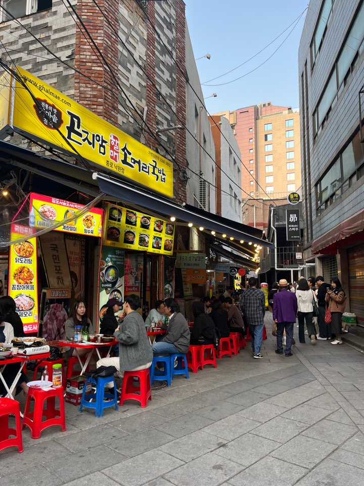 종로 3가 포차거리와 익선동쪽 야장은 많이 북적거리잖아요. 밥도사 술도사는 식당 앞이 막혀있어서 야장을 해도 답답한 느낌이 없어서 좋아보였고 내부에 전용 화장실도 구비되어 있어서 근처에서 야장 맛집을 찾고 계신다면 추천하고 싶네요.