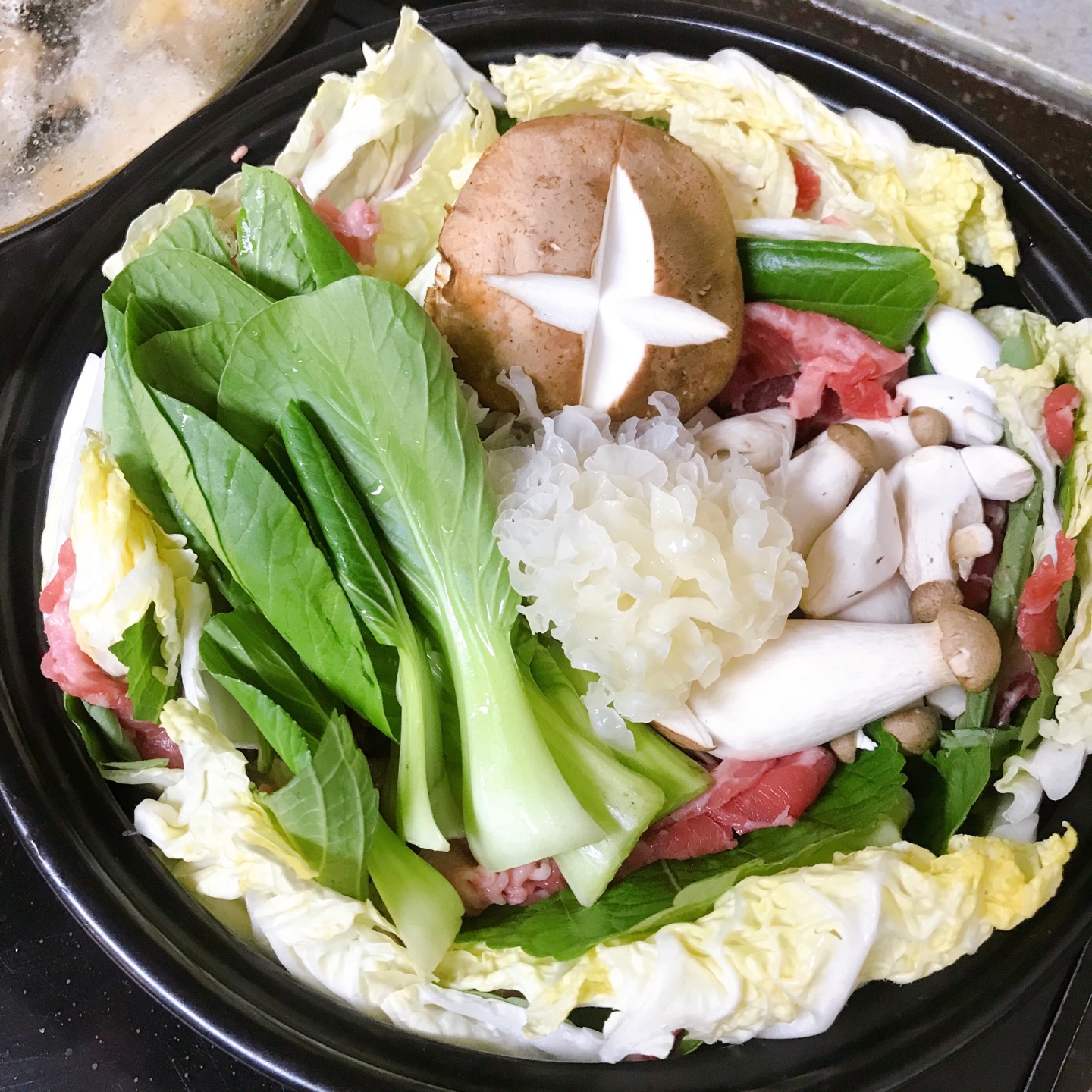 - 냄비 가운데에 청경채와 버섯을 놓아줍니다.