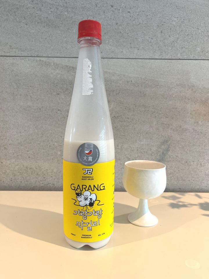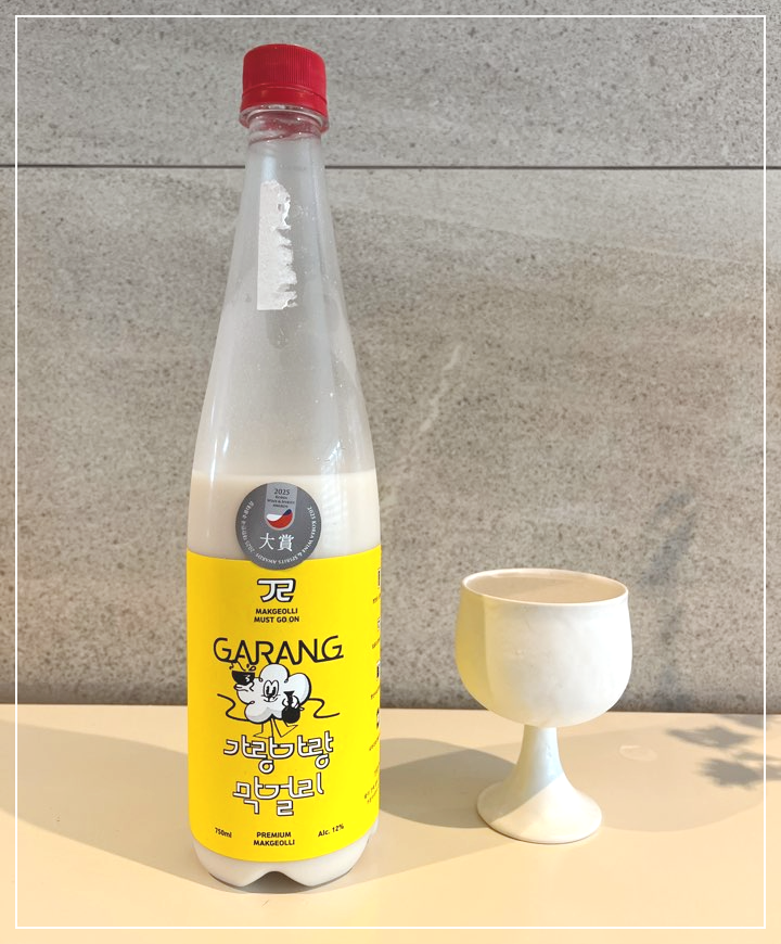 가랑가랑 막걸리는 부산에 위치한 가랑가랑 양조장에서 부산 지역 쌀과 물, 누룩만으로 첨가물없이 빚어지는 프리미엄 탁주입니다. 대한민국 주류대상에서 우리술 탁주 생막걸리 부문에서 대상을 받은 술이지요. Makgeolli must go on 이라는 문구가 인상적이네요.