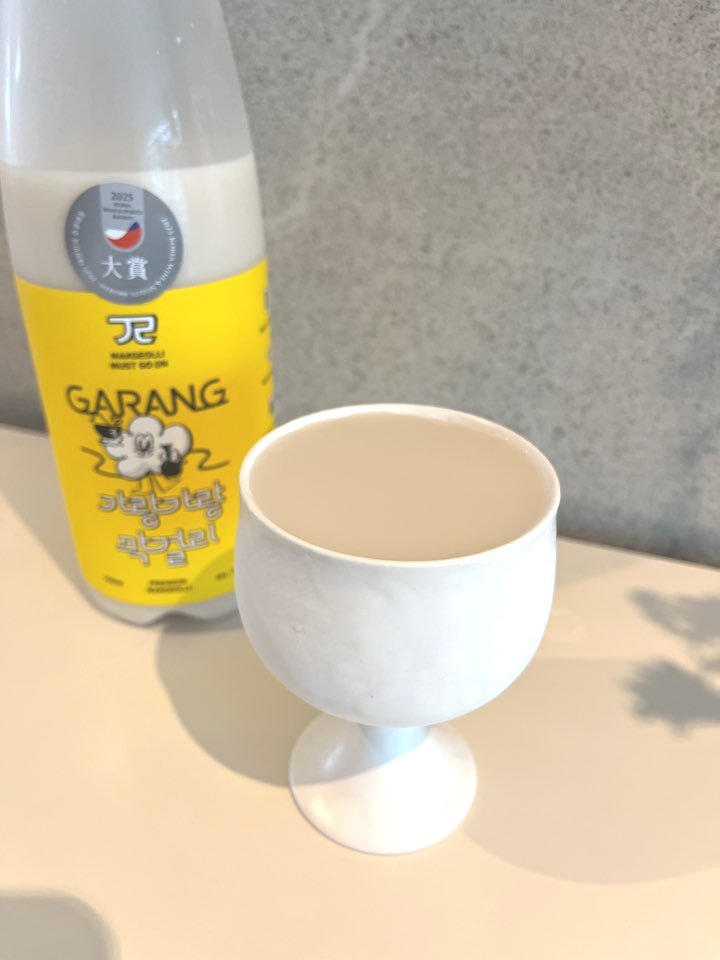 가랑가랑 막걸리는 부산에 위치한 가랑가랑 양조장에서 부산 지역 쌀과 물, 누룩만으로 첨가물없이 빚어지는 프리미엄 탁주입니다. 대한민국 주류대상에서 우리술 탁주 생막걸리 부문에서 대상을 받은 술이지요. Makgeolli must go on 이라는 문구가 인상적이네요.