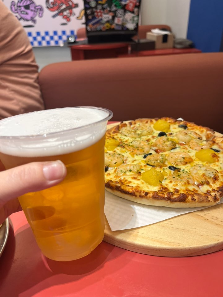 저는 혼자 마시는 거라 한 잔만 시켜서 마셔봤어요. 피자와 맥주 조합은 두 말하면 입 아프죠. 게다가 밖에서 마시는 생맥주라니 정말 맛있었습니다. 다음에는 꼭 차 없이 여유롭게 방문해서 피자와 함께 무제한 생맥주를 즐겨보겠어요!