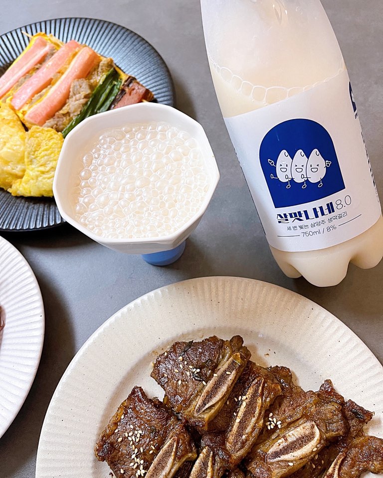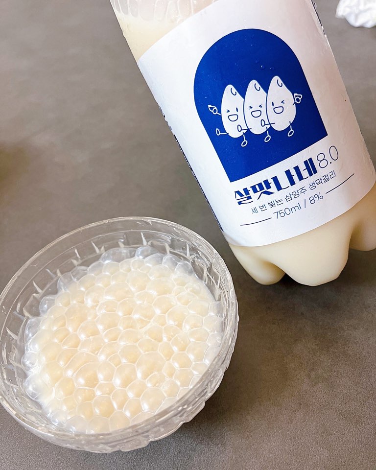 8도짜리 막걸리답게 질감은 꽤 무거운 편인데 뽀글뽀글 탄산이 잘 살아있어서 청량감있어요. 제가 딱 좋아하는 막걸리 맛이에요! 어쩜 이리 맛있죠? 해창 9도 막걸리랑 비슷한 결이라고 느꼈는데요. 해창 막걸리의 반 가격이라 당분간 자주 사 먹을 듯 합니다.