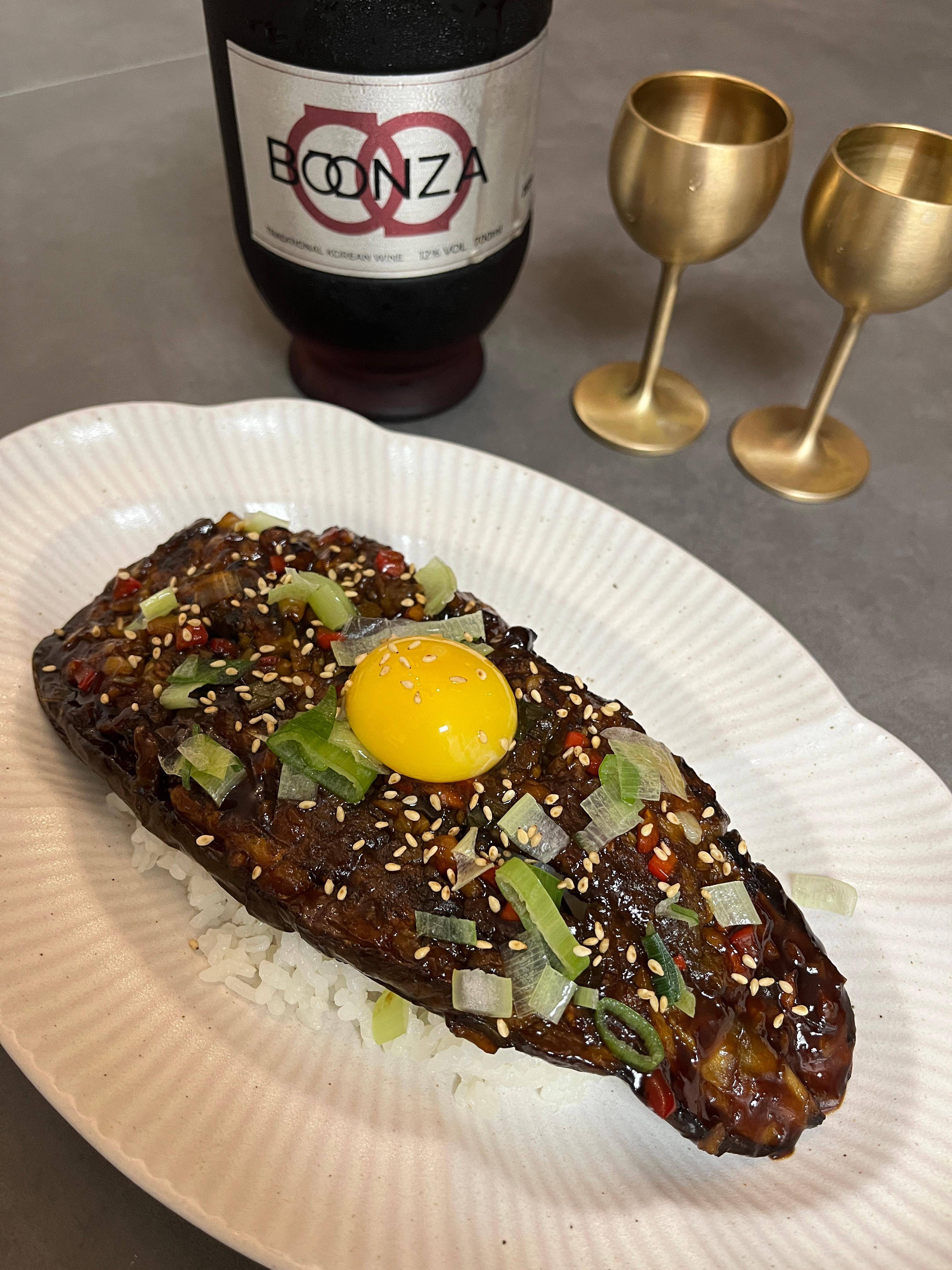 요즘 핫한 박나래 가지덮밥과 함께 페어링 해 보았는데요. 달짝지근한 가지가 산미있는 분자와 꽤 잘 어울렸습니다.