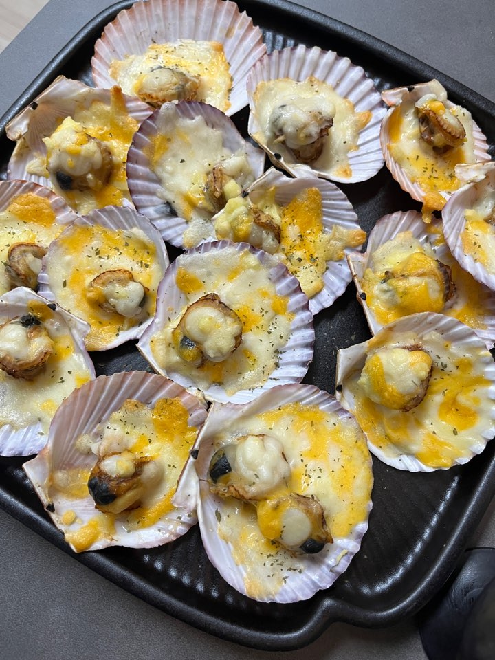 제철인 홍가리비는 요즘 꼭 먹어야하는 것 중에 하나죠! 반은 찜기에 쪄서 먹고 반은 치즈를 올려 오븐구이로 즐겼어요. 철 지나기 전에 꼭 드셔보세요!