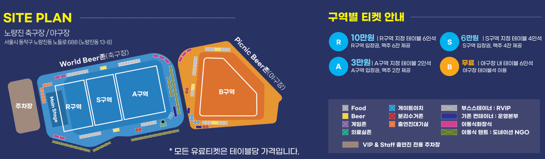 - 테이블은 비 지정석으로 운영되며, 티켓 구매가 필수입니다.