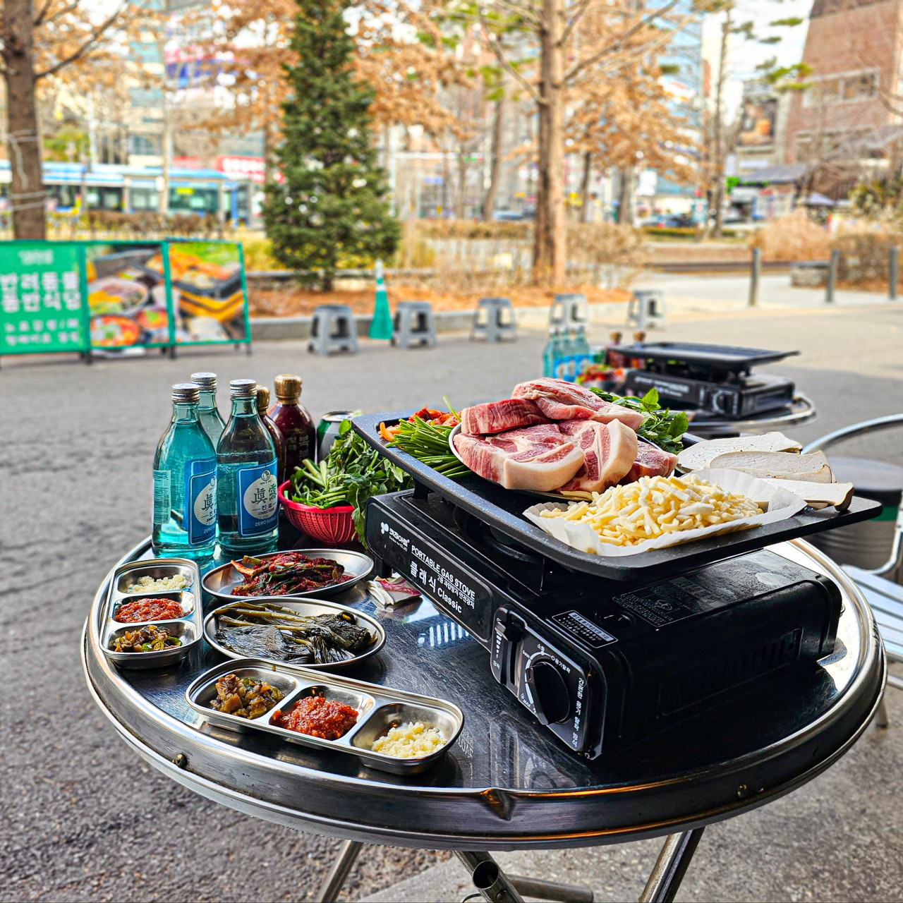 을지로 4가역 1번출구에 위치하며 야장에서 삼겹살을 구워먹을 수 있는 곳입니다. 아침 9시부터 열어서 낮술을 즐기기에도 좋아 보입니다.