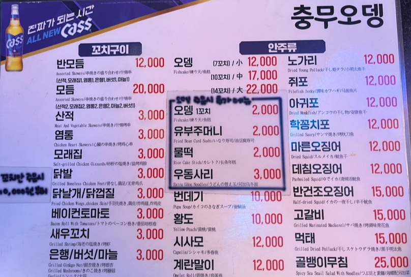 | 메인 메뉴 | 모듬꼬치, 어묵탕 |