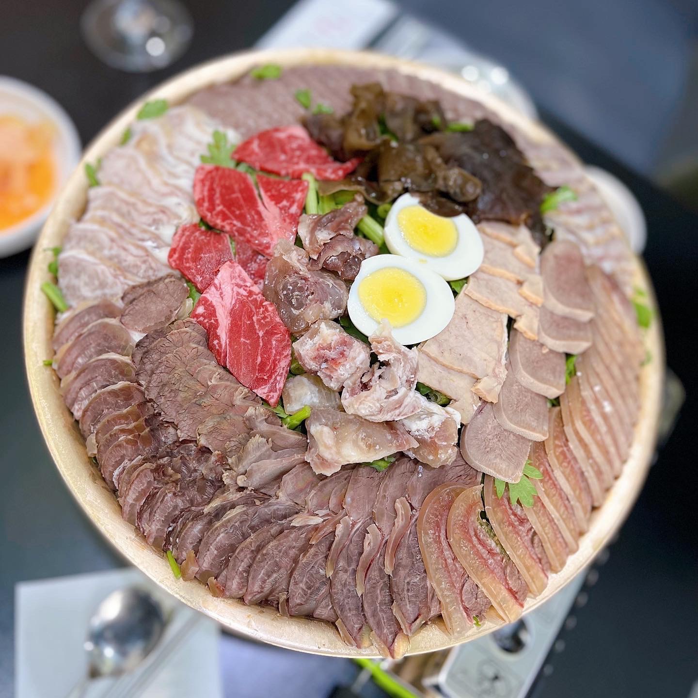 어복쟁반 소자를 주문했는데 둘이 먹기에는 많고 3인 정도가 먹기에 적당할 만한 사이즈였습니다. 다양한 부위의 소고기가 예쁘게 줄지어 둘러져있었고 고명으로 찐계란이 올라가 있었습니다. 육수가 보글보글 끓을 때부터 고기를 한 점씩 집어서 초간장에 찍어먹습니다. 부위별로 맛이 다양해서 골라먹는 재미가 있고 추운 날씨에 뜨거운 소고기 육수를 떠먹으니 얼었던 몸이 사르르 녹는 것이 참 좋습니다. 다른 테이블에서도 어복쟁반과 함께 소주나 맥주를 즐기시는 분들이 많았는데, 로라처럼 특별히 원하는 술이 있다면 콜키지 차지를 지불하고 먹기에 너무나 괜찮은 메뉴였습니다.
