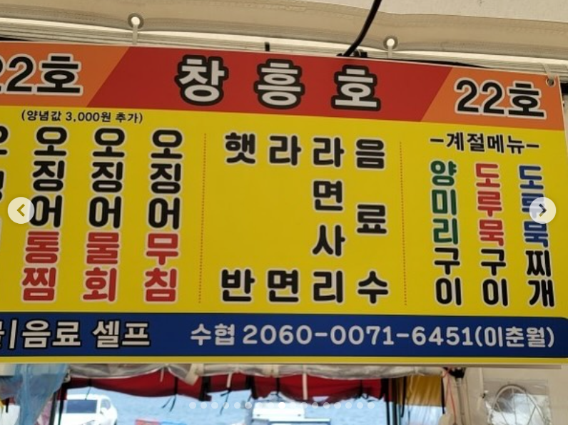 주당부부에게는 막걸리가 없다는 점과 소주 맥주가 아주 시원하지는 않다는 점이 조금 아쉬웠지만 오징어회와 통찜은 기대 이상으로 맛있었던 곳이었어요! LG트윈스 팬들은 창흥호로 가보시길요 :)