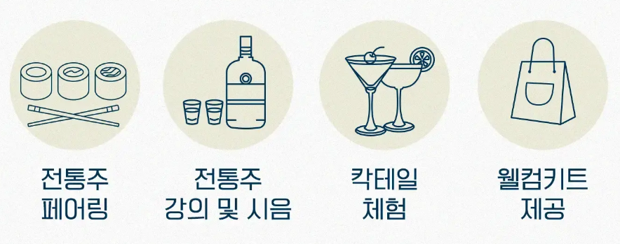 한국 전통주의 주종별 개념을 잡고 다양한 특징 및 분류별 전통주에 대한 교육을 진행합니다.