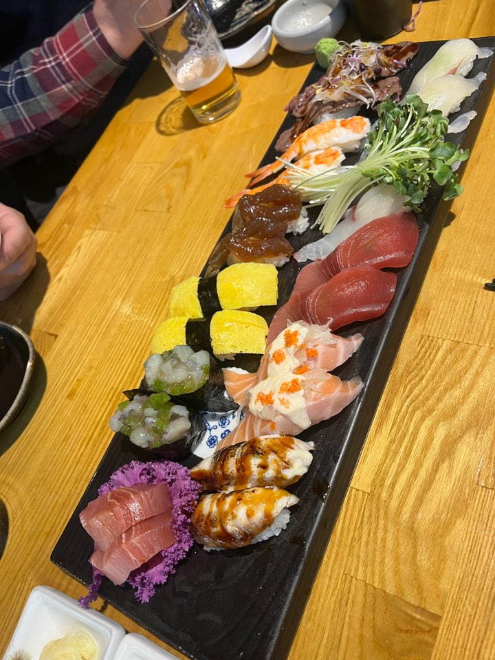 메인 메뉴인 초밥 20피스가 나왔어요. 사시미는 참치를 선택했는데 근래에 먹어본 참치중에 가장 맛있었습니다. 10가지 초밥은 어느것 하나 빠지는 것 없이 정말 다 맛있었어요.