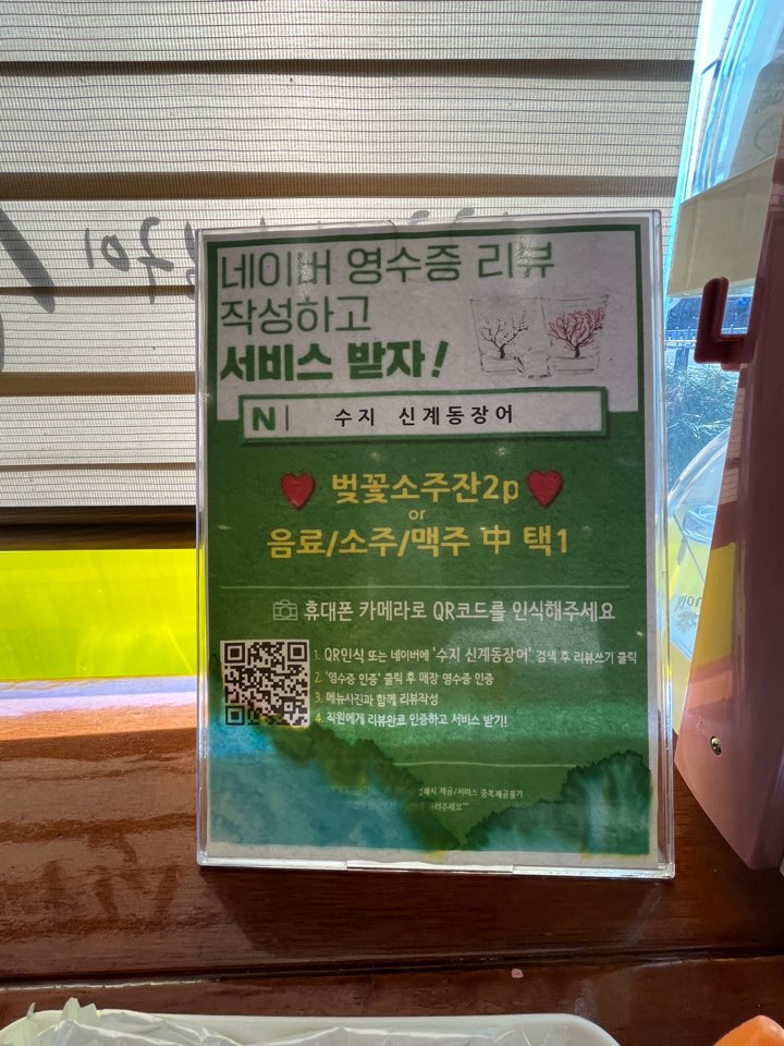 네이버 영수증 리뷰를 하면 벚꽃 소주잔이나 음료, 소주, 맥주 중 1개를 받을 수 있답니다. 저희는 음료로 선택!