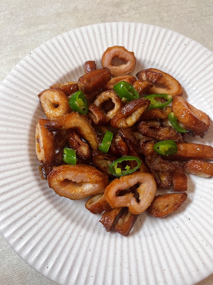 심우주 막걸리는 매콤한 안주랑 어울린다고 합니다. 그런데 심우주 막걸리를 마시는 날 빨간 음식이 당기지 않아서 훈제막창에 청양고추를 올려 알싸한 맛을 더해보았습니다.