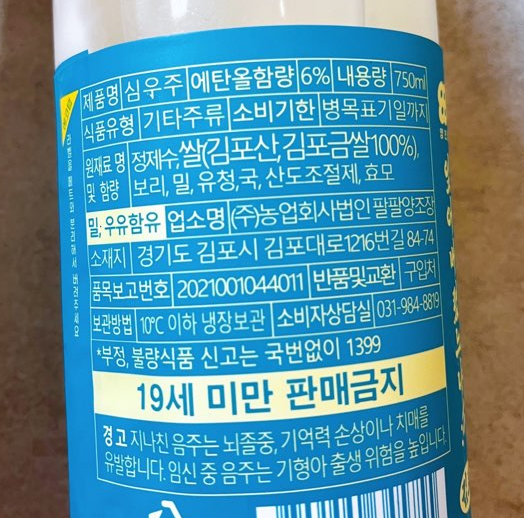 푸른 라벨이 참 상쾌한 느낌이고 잊어버렸느냐!! 라는 문구가 눈에 띕니다. 성분 궁금해하는 분들이 계셔서 사진으로 남겨놓겠습니다. 요즘 이슈인 아스파탐은 전혀 들어가지 않은 막걸리입니다.