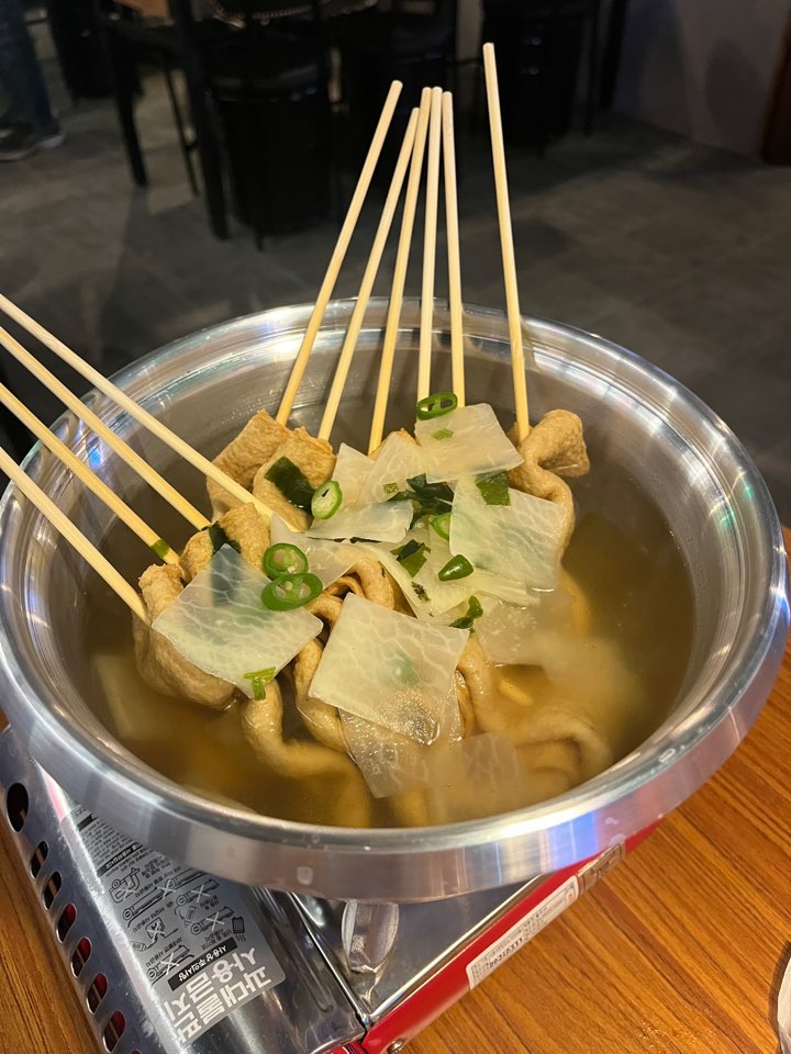 치즈라볶이는 생각보다 매웠어요. 그런데 자꾸 손이 가는 맛! 라면이 꼬들해서 좋았습니다. 길거리 어묵탕은 10 꼬치나 들어있는데 청양고추가 들어가서 살짝 매콤해요. 아이들과 가신다면 미리 꼭 빼달라고 말씀하시길!