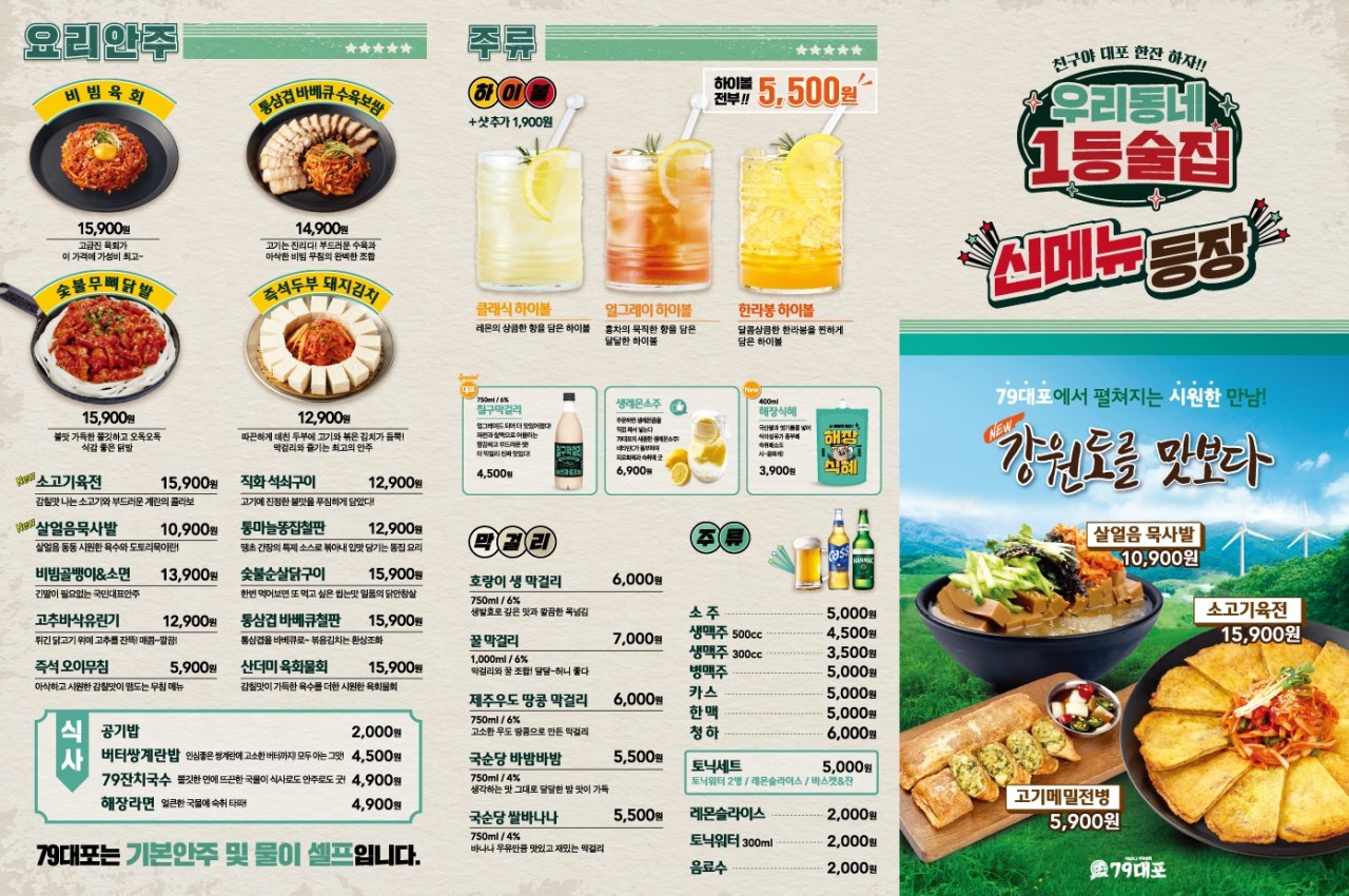 용인시 수지구 죽전동에 새로 오픈한 79 대포 모습입니다. 17시부터 새벽 2시까지 운영되는데 라스트 오더가 12시예요. 이쪽이 아무래도 베드타운(Bed town)이라 조금 일찍 마감하는 분위기인 것 같습니다.