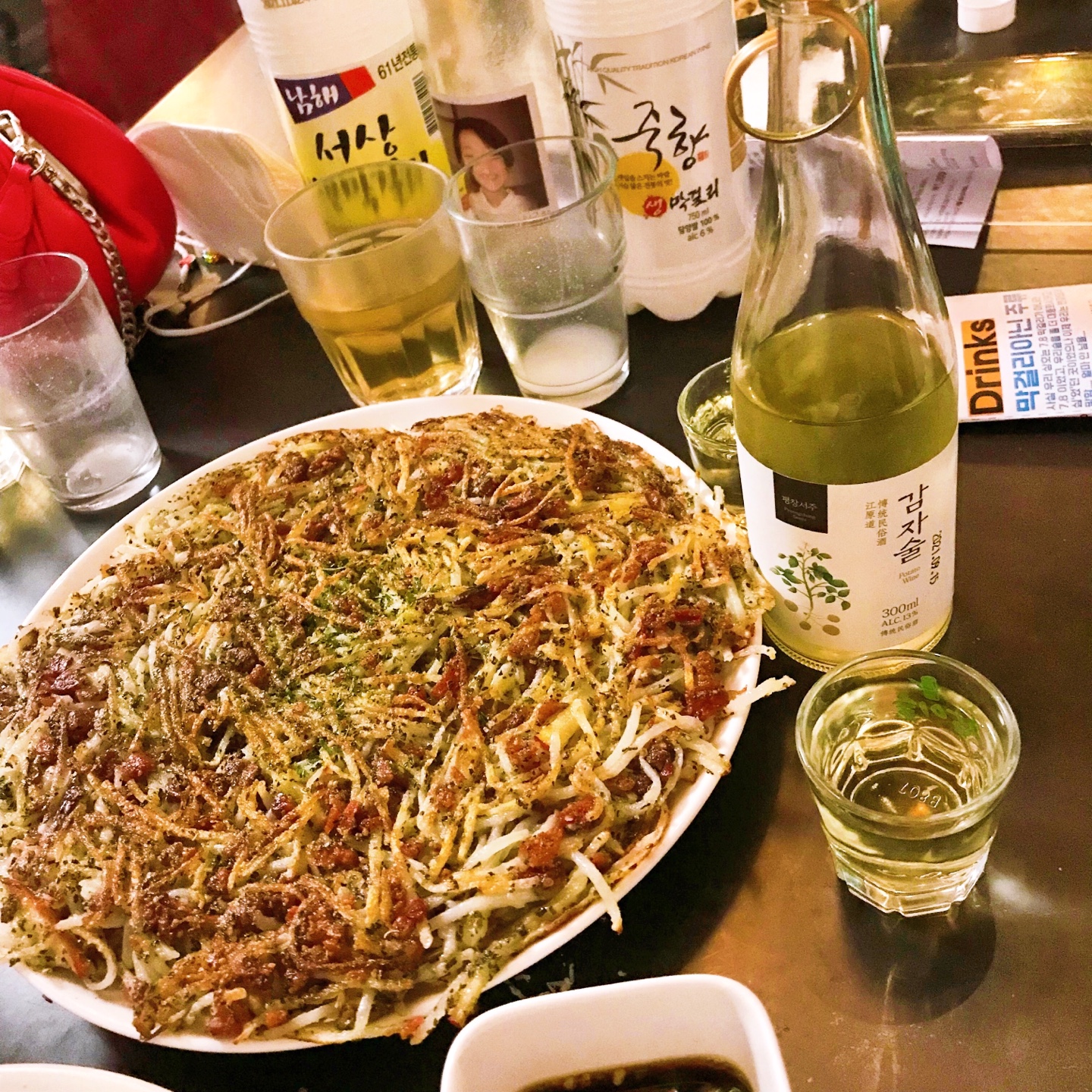 보시다시피 칠점팔 막걸리의 음식들은 다른 곳에서는 한 번도 먹어보지 못한 이색적인 메뉴들로 구성되어 있었습니다. 전통주점에서 흔히 접할 수 있는 메뉴인 감자전에는 바질이 첨가되어 한식이지만 양식의 느낌이 나는 신선한 변화를 주었습니다. 메뉴 구성이 특별할 뿐 아니라 맛도 정말 좋았고 전통주와의 페어링도 너무나 훌륭해서 인기 있는 이유를 충분히 납득할 수 있었습니다. 즉 안주가 너무 훌륭하고 전통주와 페어링 하기 좋기 때문에 칠점팔 안국에 방문해야 합니다.