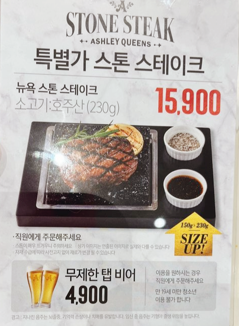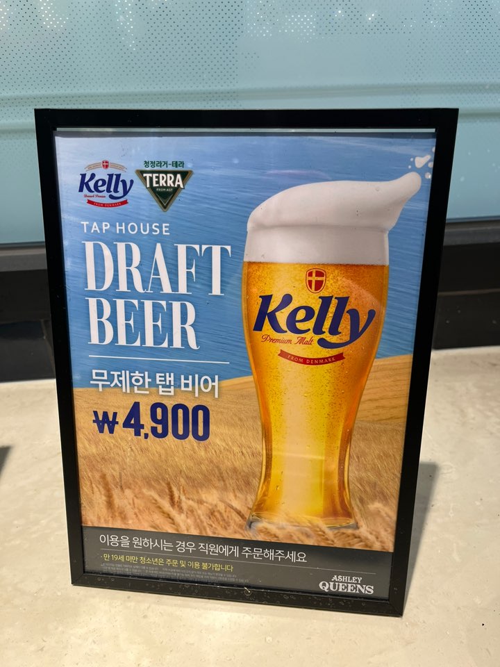 애슐리퀸즈의 매력은 4,900원 무제한 탭 비어인 것 같습니다. 주모 로라 기준이요. 하하.