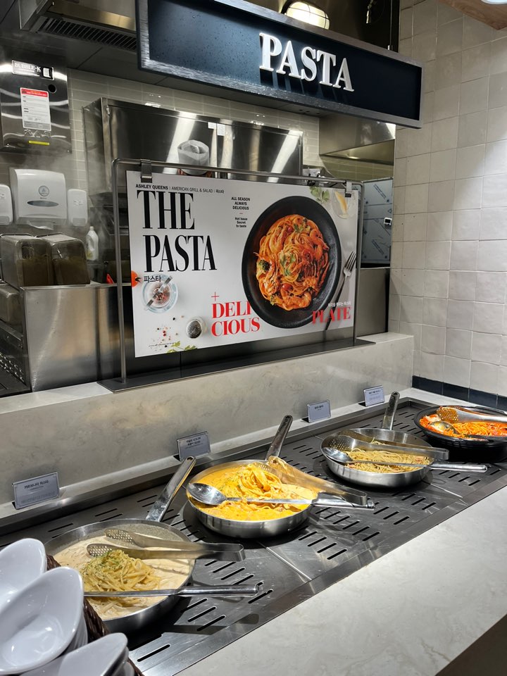 새로 생긴 지 얼마 되지 않아서 방문자가 많은 편입니다. 저는 애슐리퀸즈 오픈 30분 전에 미리 애슐리 앱으로 대기예약을 걸어두어서 바로 입장하였는데 11시 오픈시간에 맞추어 워크인으로 대기 예약을 걸어놓은 팀들이 30팀이 넘더라고요. 방문하실 분들은 평일이라고 해도 미리 예약하시면 좋겠습니다. 아래에 앱 링크 걸어둘게요.