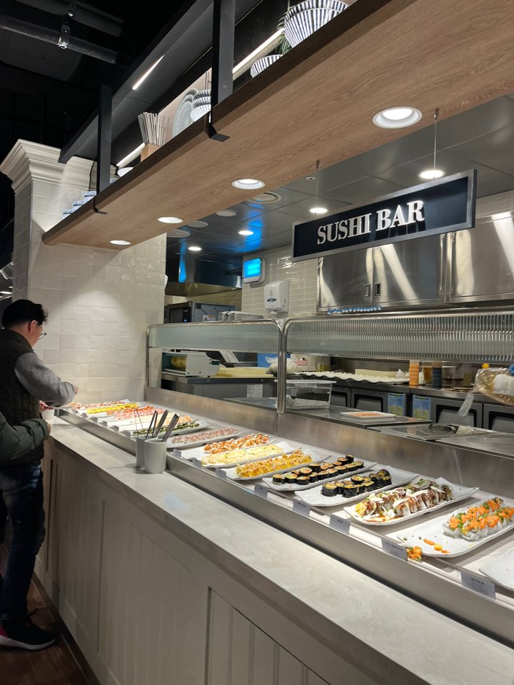 메인 메뉴는 파스타, 피자, 스시, 그릴메뉴가 있어요. 메뉴가 너무 많아서 하나하나 찍지는 못했는데 파스타 코너와 그릴 코너가 괜찮았습니다. 음식 온도가 따뜻하게 잘 유지되고 있었어요.