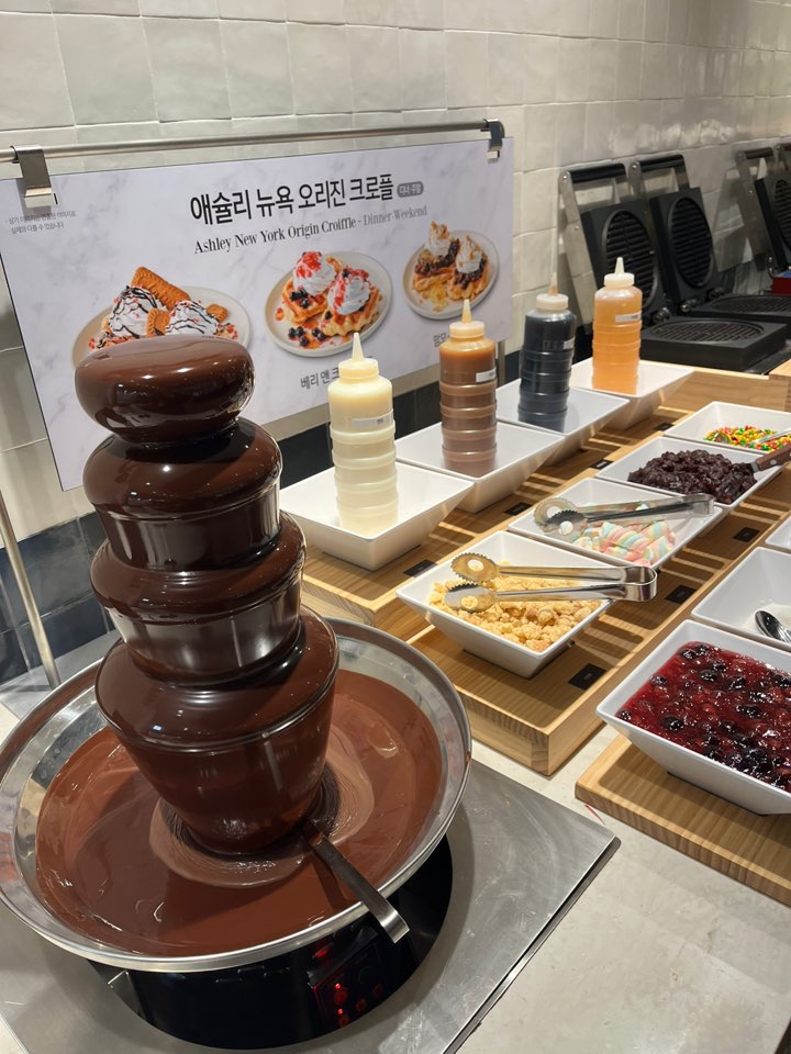 런치에는 크로플을 직접 만들어 먹을 수 있어요. 디저트 컬렉션 행사 중이라 정말 많은 디저트들이 있는데요. 디저트들이 말라서 뻣뻣한 경우가 있는데 여기는 촉촉하게 잘 보관되고 있었어요. 사진에는 없지만 티라미수가 아주 맛있었고 생망고가 있는데 꼭 드세요. 정말 맛있습니다.