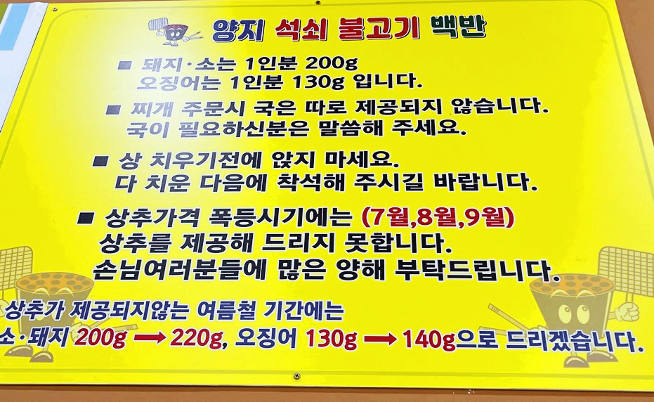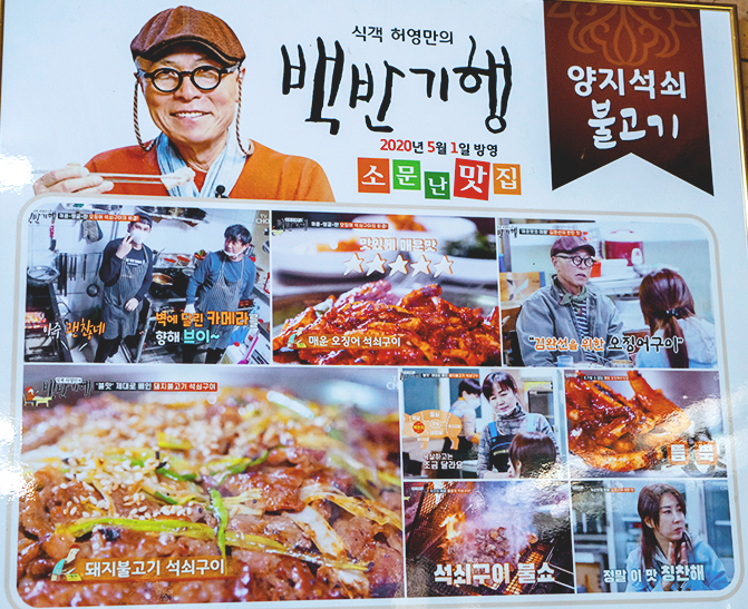 2020년 허영만의 백반기행 49회에 방영된 양지 석쇠 불고기백반. 관련 영상 첨부합니다.
