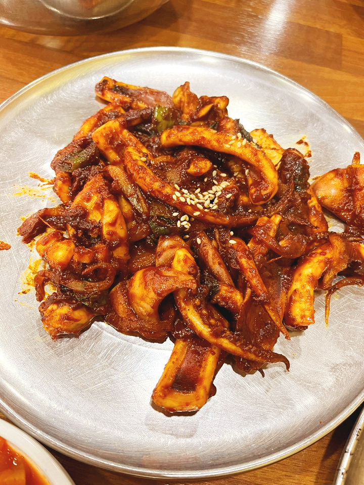 저희는 오징어 2인분, 돼지 2인분을 주문했어요. 불향이 확 나요. 석쇠 돼지 불고기가 특히 불향이 맛있게 났고 굽기 정도도 알맞아서 아이들이 정말 잘 먹었어요. 그리고 석쇠 오징어는 꽤나 매콤한 맛인데 야채 없이 오로지 오징어로만 구성되어 있어서 양이 많다고 느껴졌습니다. 오징어가 통통하고 실해서 돼지 불고기보다 만족스러웠어요.