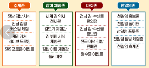 전남 김, 수산물 편의점, 홍보관, 전국 이색 김밥 판매관, 영수증 이벤트