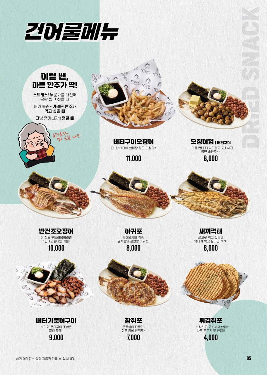 - 날씬 오징어 후라이드 ; 오징어 진미채를 튀겨내 겉바속촉 바삭 쫄깃한 안주
