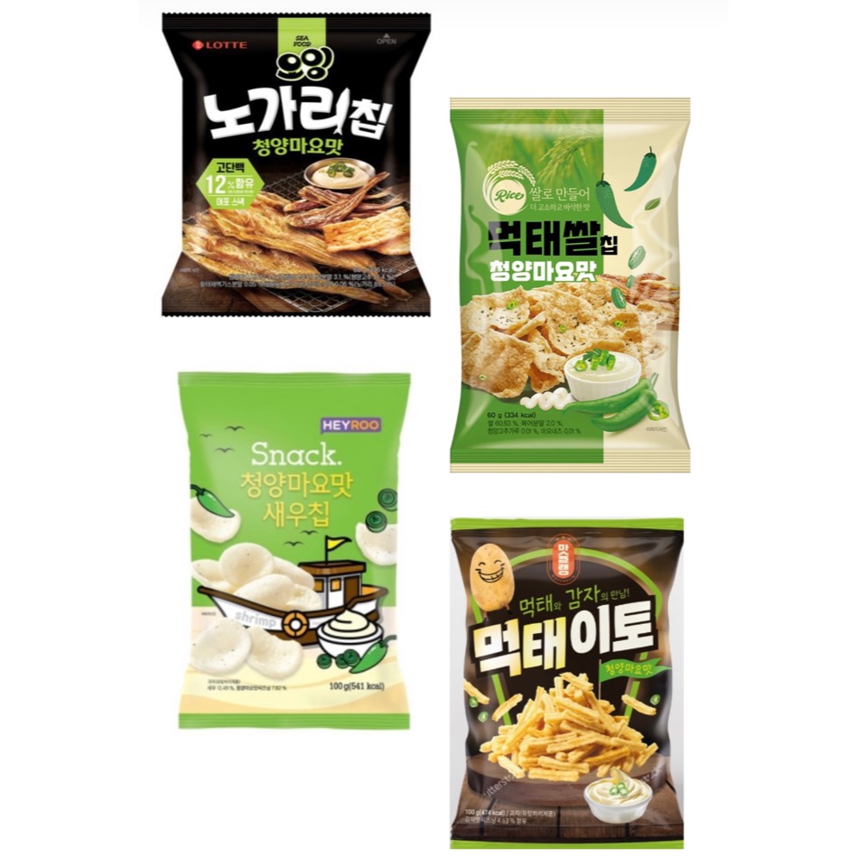 오잉 노가리칩/ 먹태이토/ 먹태쌀칩/ 청양마요맛 새우칩/ 먹태깡 카피캣 전격 비교