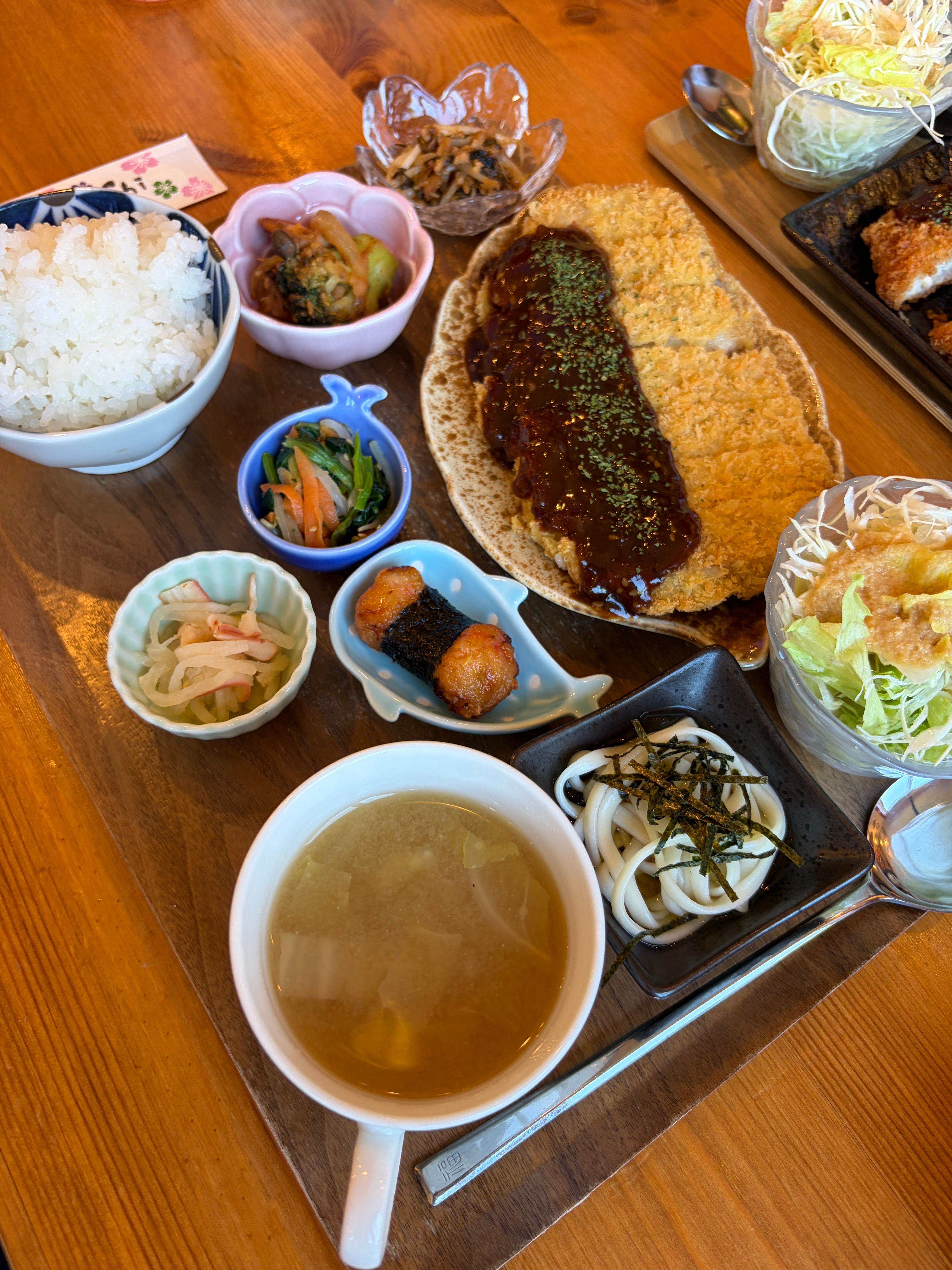 메인요리와 함께 반찬 5종, 샐러드, 밥, 국이 나와요. 진짜 푸짐하죠? 메인 뿐만 아니라 반찬까지도 다 맛있었어요. 정말 깔끔하게 음식하는 곳입니다.