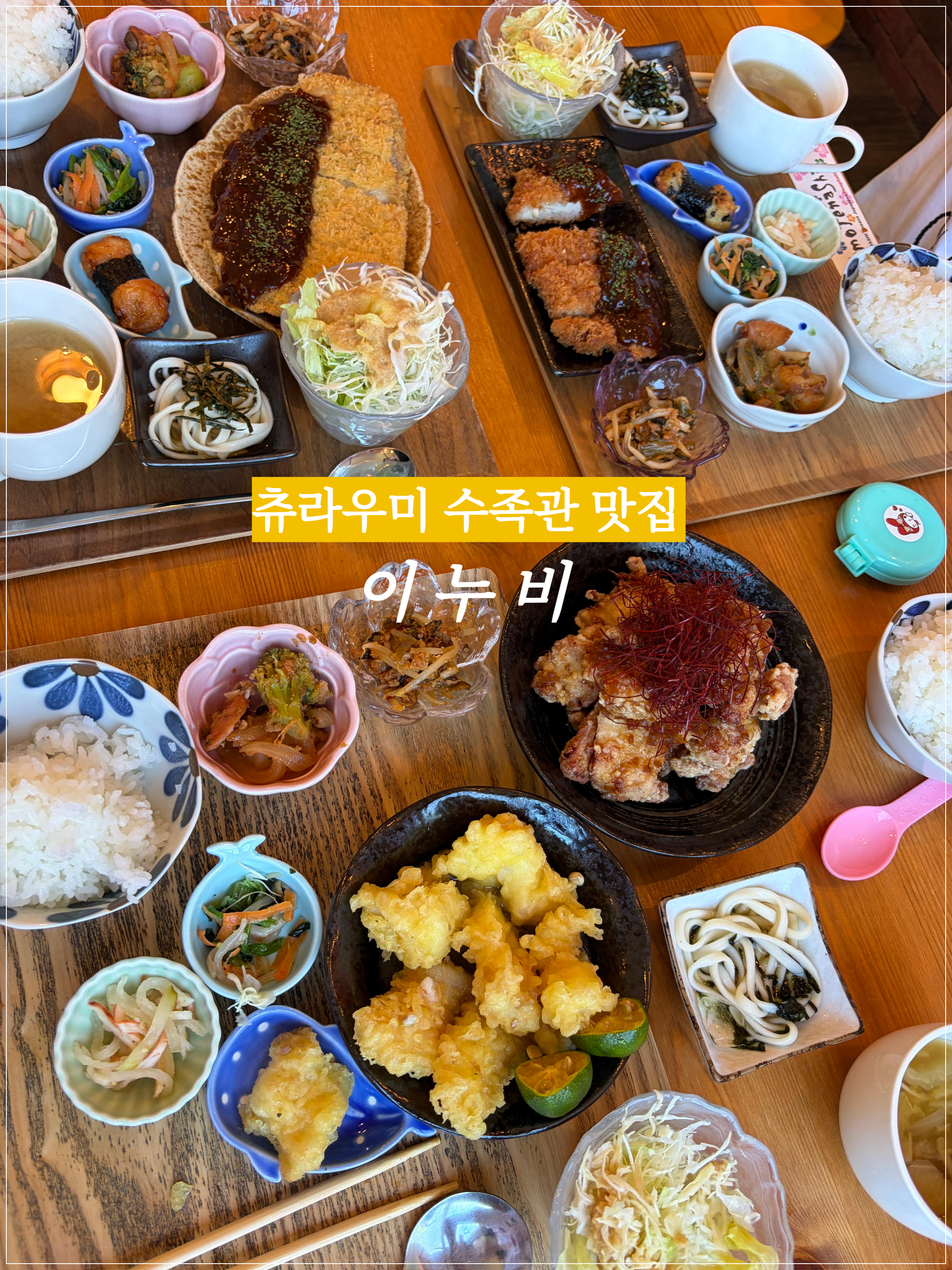 오키나와에 방문하면 츄라우미 수족관은 대부분 한 번쯤 가실텐데요! 츄라우미 수족관 근처에서 정말 맛있게 먹은 '이누비'라는 식당을 소개합니다. 돈까스, 생선튀김, 유린기 등 튀김류를 메인으로 한 일본 가정식을 판매하는 곳인데요. 구글 평점 4.8에 예약이 필수인 곳이라 예약 방법, 메뉴판, 맛까지 모두 알려드릴게요!