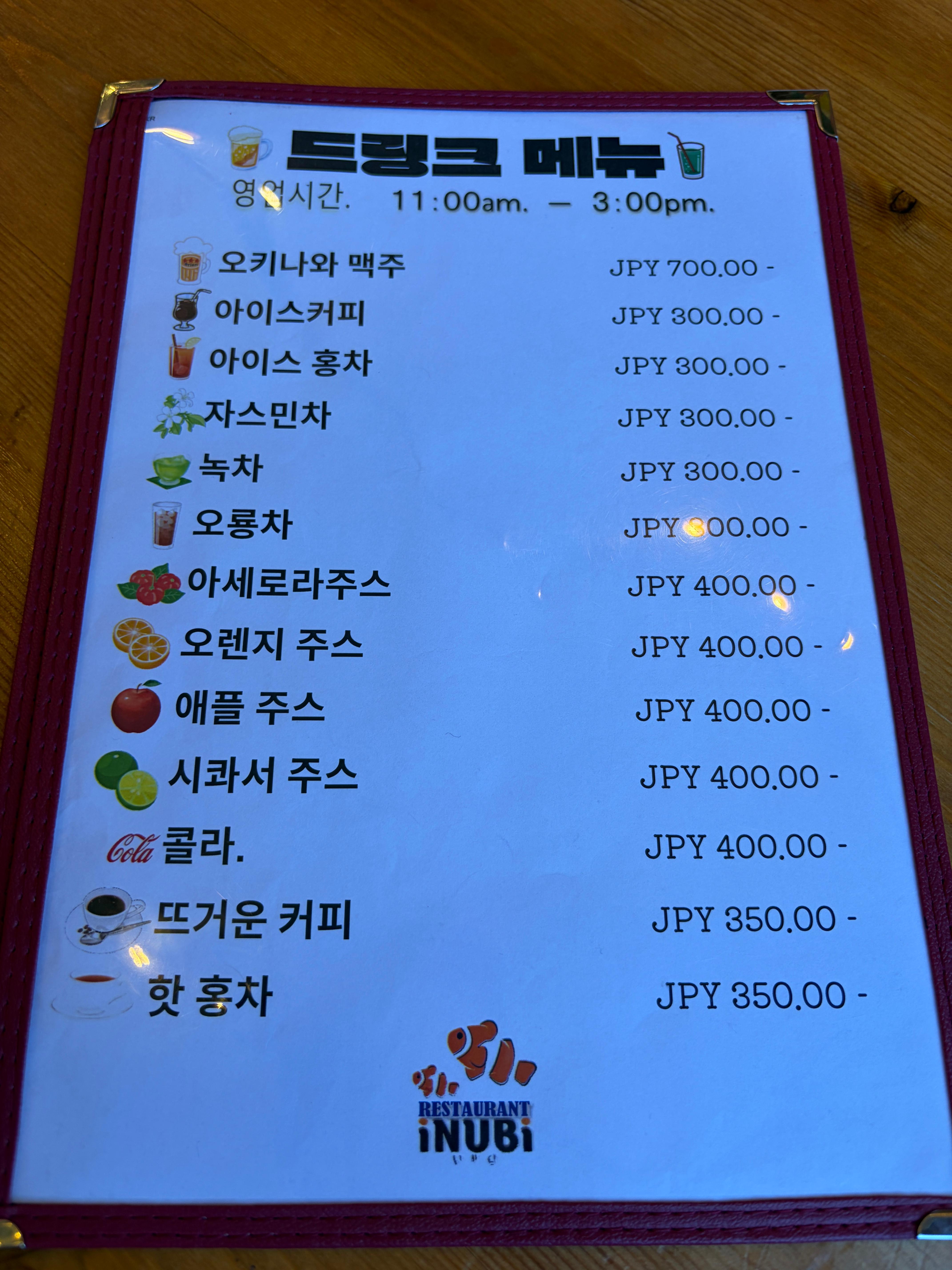 츄라우미 수족관 근처 맛집, 이누비. 친절한 사장님과 깔끔하고 맛있는 식사 덕분에 힘내서 츄라우미 수족관을 구경했던 것 같습니다. 츄라우미 수족관 내부에는 밥먹을 만한 곳이 마땅치 않기 때문에 이곳을 예약해 놓고 중간에 나갔다 오시는 것을 추천해요. (츄라우미 수족관은 당일 내 재입장이 가능합니다.)