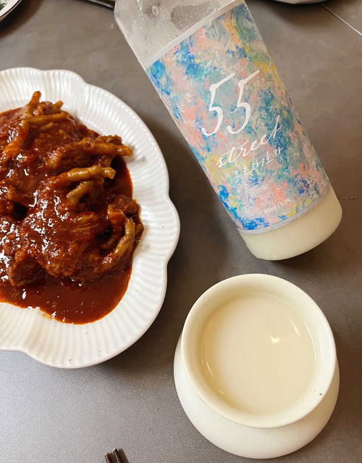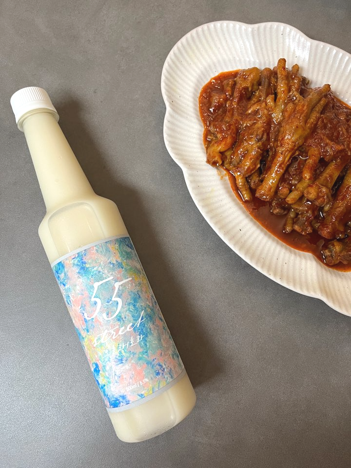 수원컨벤션센터에서 진행 중인 팔도밥상페어에서 구매해 온 마님 국물닭발과 오호라1호라 막걸리를 함께 즐겨보았어요. 가볍고 단맛이 있는 막걸리라서 매운 안주와 잘 어울립니다.
