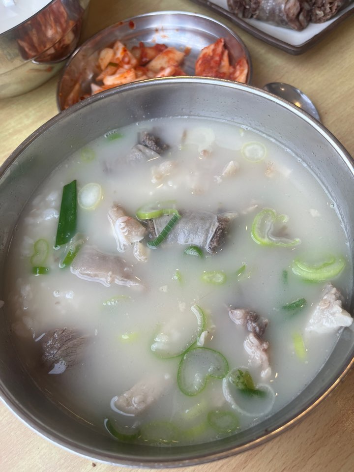 국밥은 밥이 말아져서 나오는 토렴식 국밥이고요. 건더기 건져 먹다 보면 배불러집니다. 어마어마하게 건더기가 많이 들어있어요. 고기맛 진한 국밥이 아닌 깔끔한 설렁탕 같은 국밥입니다.