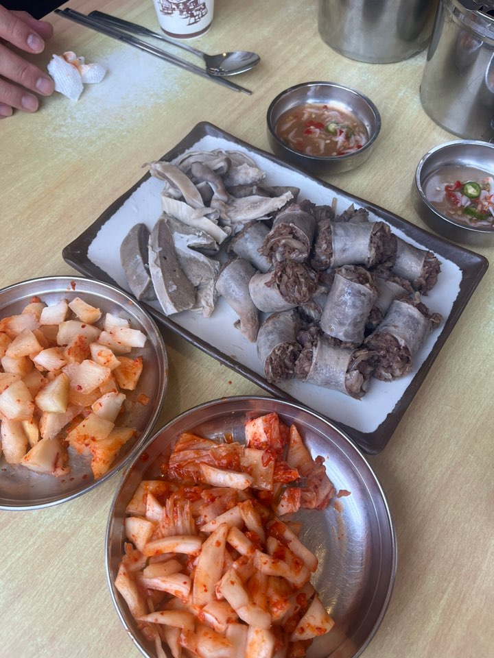 국밥은 밥이 말아져서 나오는 토렴식 국밥이고요. 건더기 건져 먹다 보면 배불러집니다. 어마어마하게 건더기가 많이 들어있어요. 고기맛 진한 국밥이 아닌 깔끔한 설렁탕 같은 국밥입니다.
