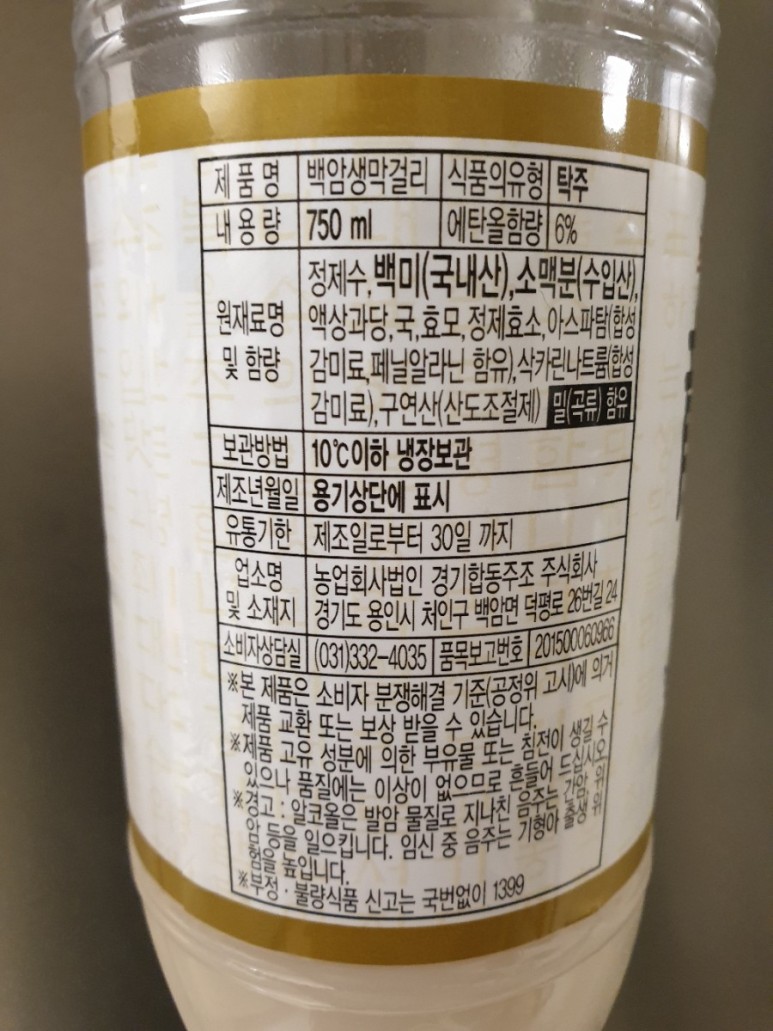 서울이라면 장수막걸리가 있었겠지만 제일식당에 구비되어 있는 막걸리는 백암 생막걸리였어요. 제일식당이 위치한 백암면에 있는 농업회사법인 경기합동주조 주식회사에서 만들어지는 지역 막걸리인데요.