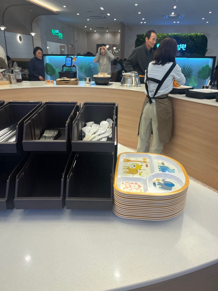 아기식기도 따로 구비되어 있고요. 탕수육, 제육볶음, 김치볶음밥, 잡채, 치킨, 피자, 파스타, 고구마 맛탕, 감자튀김, 김말이, 떡볶이, 와플, 케잌, 샐러드, 김치 등 다양한 뷔페 메뉴들도 하나같이 맛이 깔끔하고 좋았습니다. 죽을 만들어 먹을 수 있는 밥과 날계란도 준비되어 있어요.