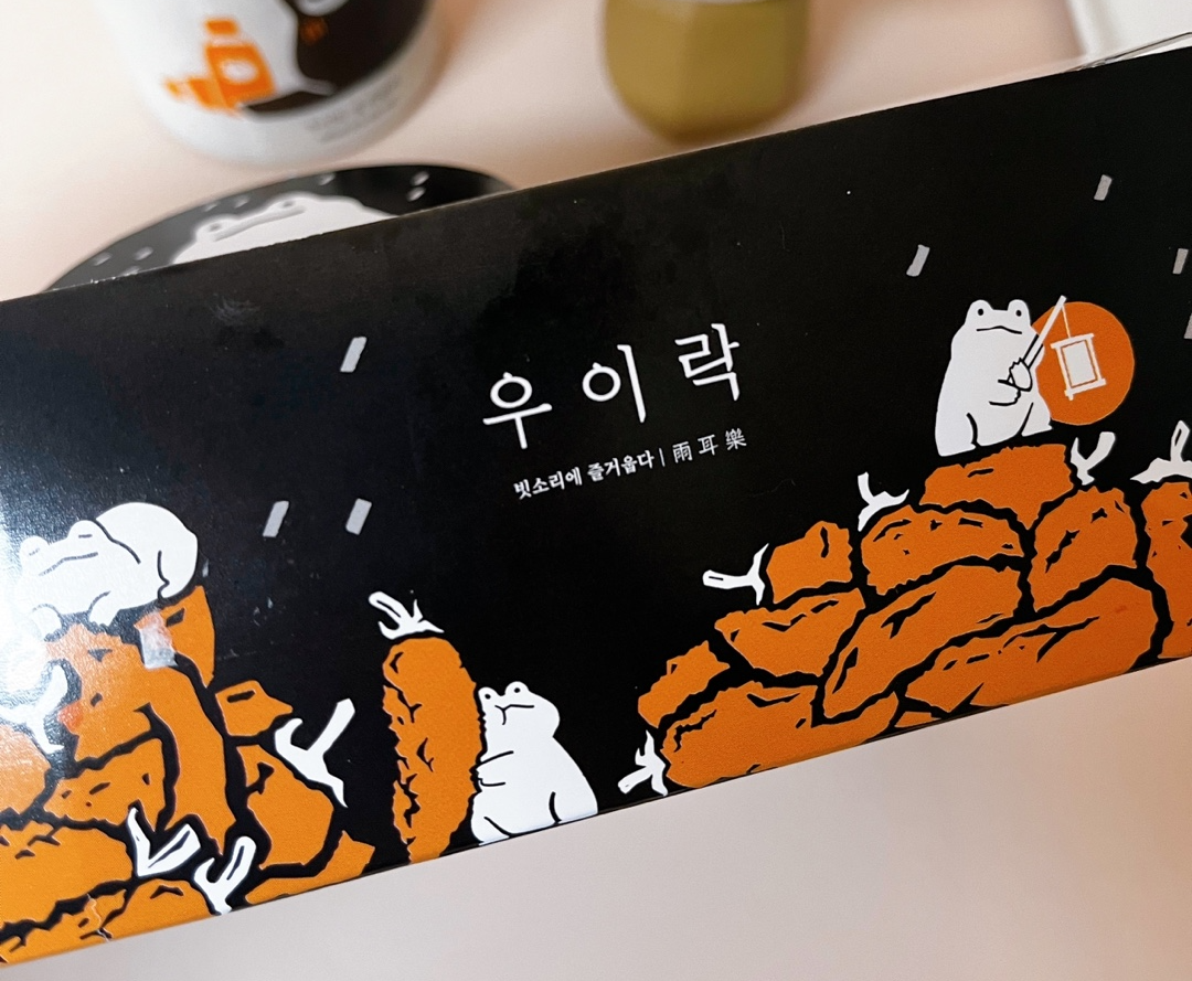 개구리가 그려진 귀여운 라벨을 가진 우이락 생막걸리 마셔보았어요.