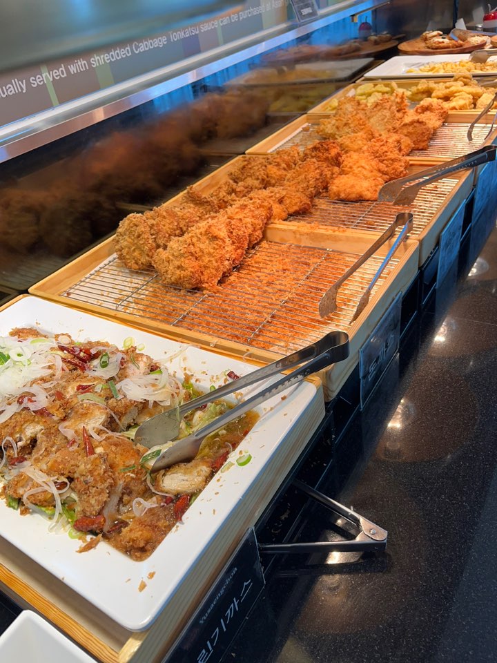 돈까스 뷔페이니 돈까스부터 보여드릴게요.