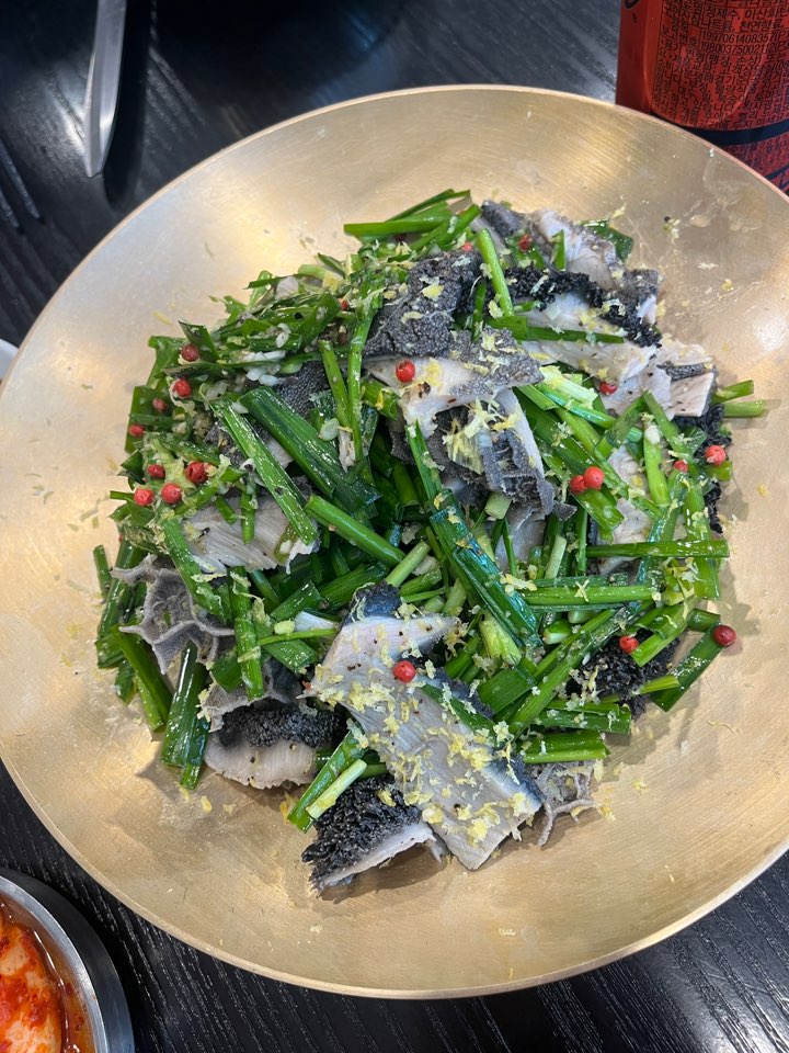 먹을텐데에서 보고 궁금했던 양무침입니다. 2만 9천원인데 양이 정말 푸짐하게 나와요. 먹어도 먹어도 줄지 않습니다. 레몬그라스 슬라이스가 뿌려져있어서 동남아 음식 먹는 느낌이 나요. 함께 주시는 저 빨간 양념장이 킥입니다. 정말 맛있어요. 남은 양무침은 포장했는데 소스도 같이 넣어달라고 꼭 말하세요!