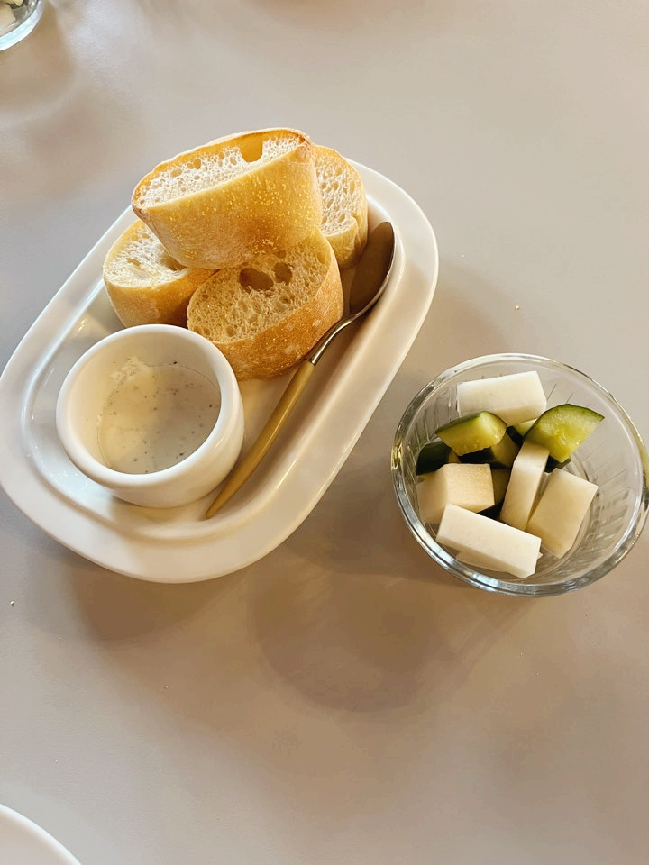 인원수에 맞게 식전빵이 먼저 제공됩니다. 함께 나오는 트러플마요소스가 진짜 진짜 맛있어서 싹싹 긁어먹고 한 번 리필했어요. 식전빵은 네이버 영수증 리뷰 시 추가 제공돼요.