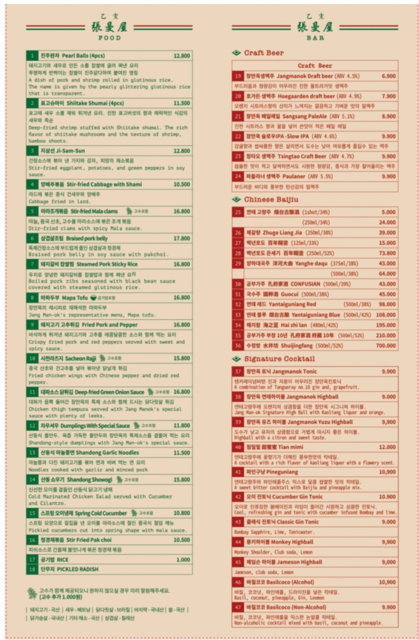 외관부터 여기가 을지로인지 홍콩인지 헷갈리지않나요? 을지 장만옥은 대만과 홍콩 가정식을 재해석한 Chinese Tapas Bar라고 합니다. 저는 토요일 오후 3시쯤 방문해서 대기없이 입장했습니다.
