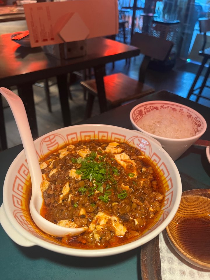 튀긴걸 먹고 나니 매콤한 메뉴가 먹고 싶어져서 마파두부를 주문했어요. 홍콩식 마파두부라 일반적으로 중국집에서 먹어보던 한국식 마파두부랑 아주 다른 느낌이었습니다. 마라 좋아하시면 무조건 좋아할 것 같아요. 밥도 함께 나와요.